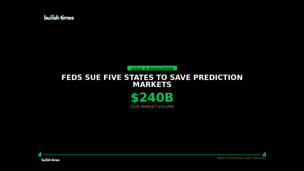 The CFTC has sued five US states in a single month to block them from regulating prediction markets as gambling. With $240 billion in annual volume at stake, this federal vs state clash could reshape crypto regulation for a generation.